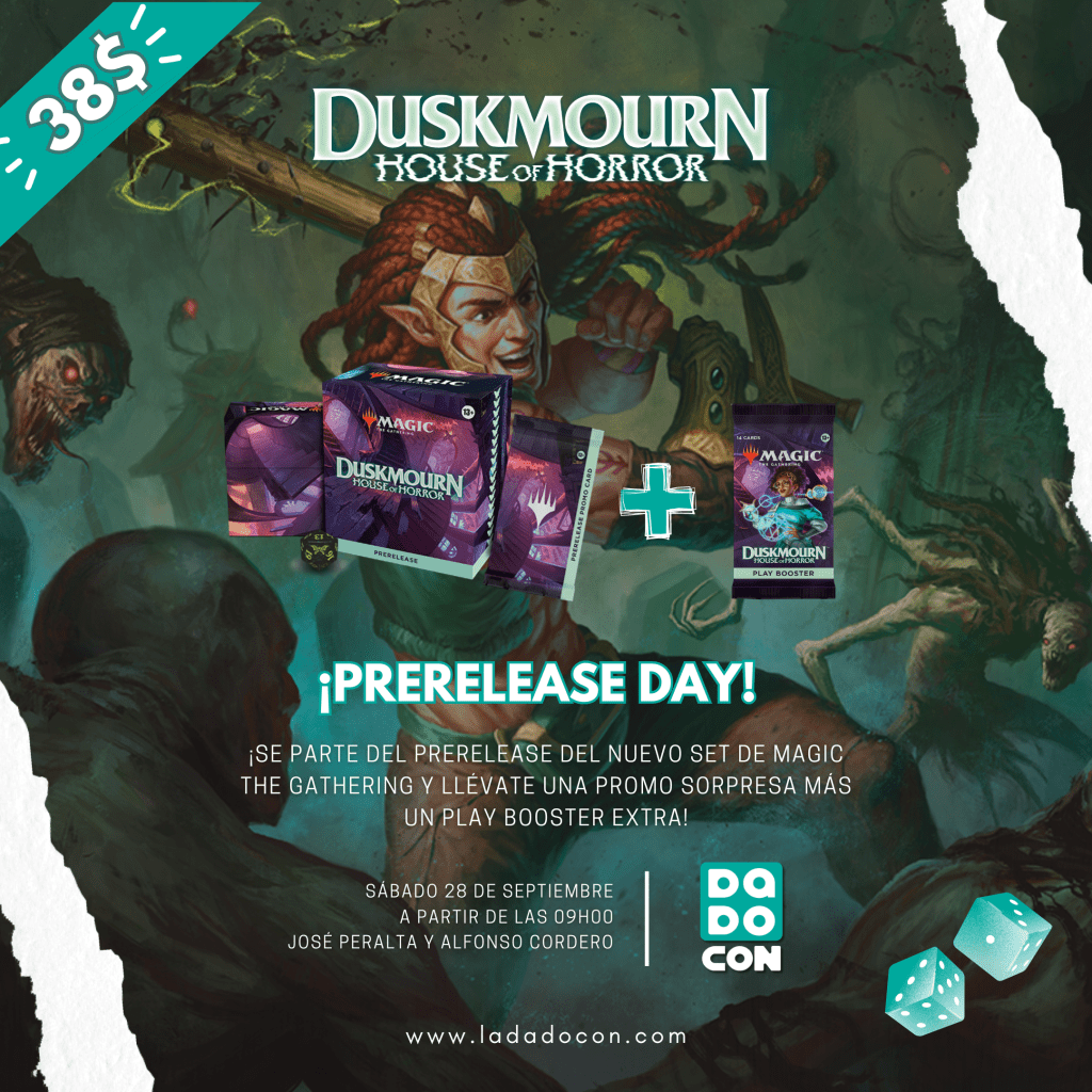 ¡No te pierdas el Prerelease en la DadoCon este sábado 28 de septiembre! Vive la emoción de jugar con el nuevo set antes que nadie, compite por promociones exclusivas y demuestra tu habilidad en The Rustic. Con tu inscripción, obtendrás una promo sorpresa, otra para los top 3 y un Play Booster para todos los participantes. ¡Una experiencia épica está esperando por ti!