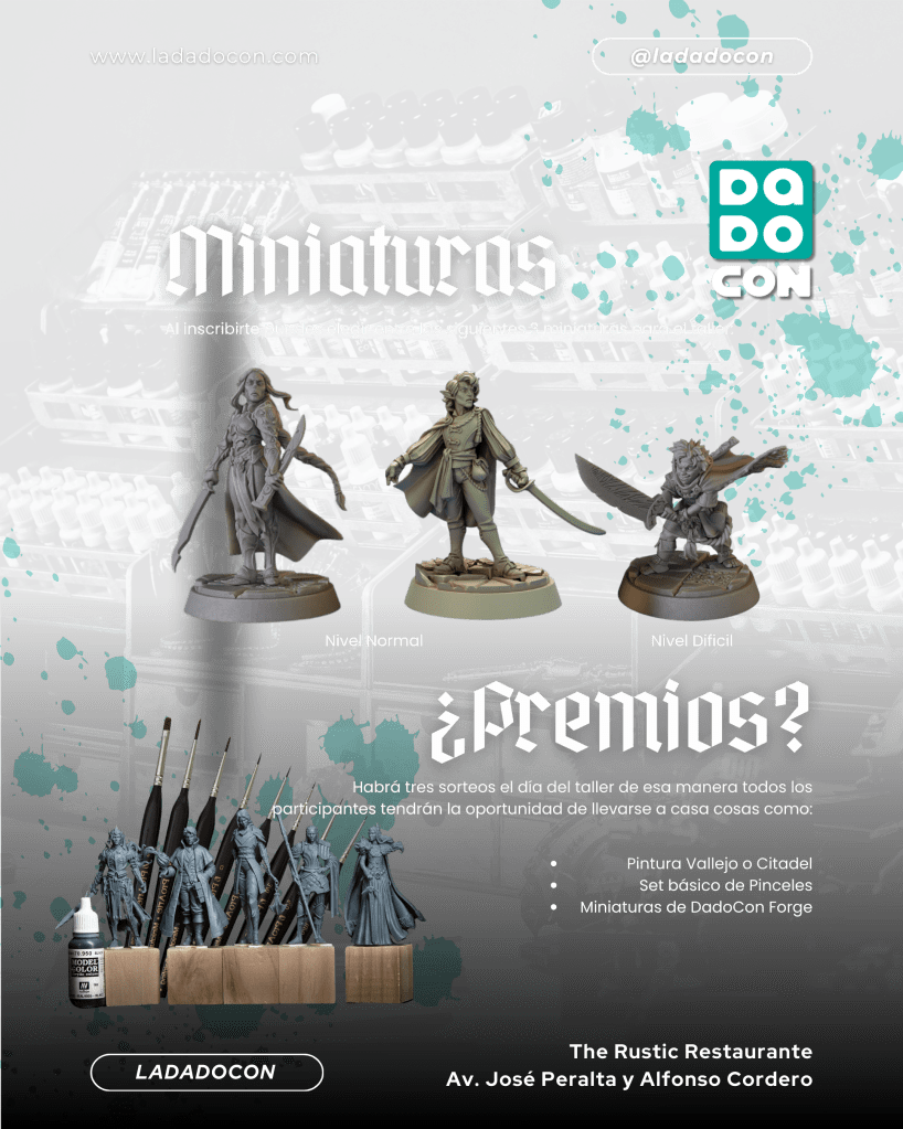 ¡La espera terminó! En DadoCon estamos emocionados de anunciar el Taller de Pintura de Miniaturas, una experiencia perfecta para quienes quieren iniciarse o mejorar en el arte de pintar miniaturas para juegos de rol, wargames y coleccionismo.