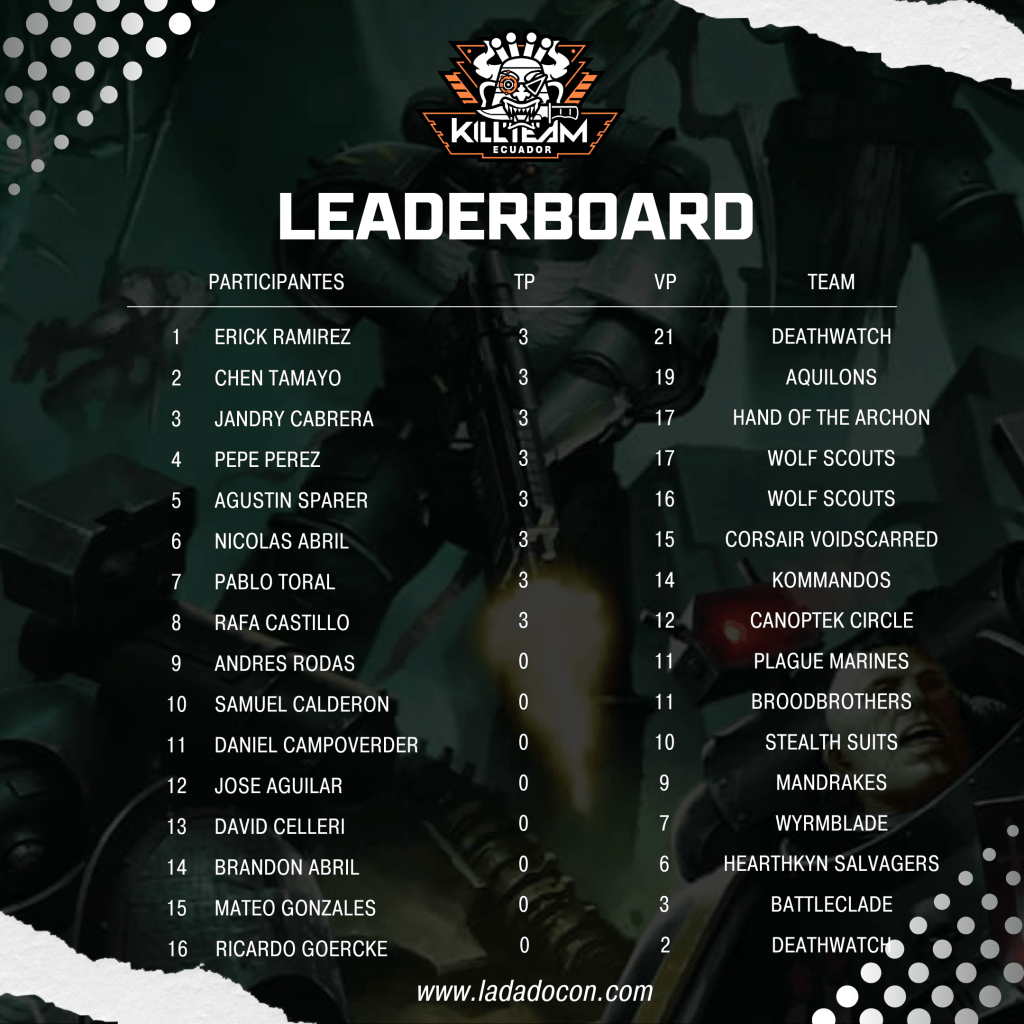ERICK, al mando de sus Deathwatch, se lleva el título de MVP de la jornada con un imponente total de 21 puntos de victoria.