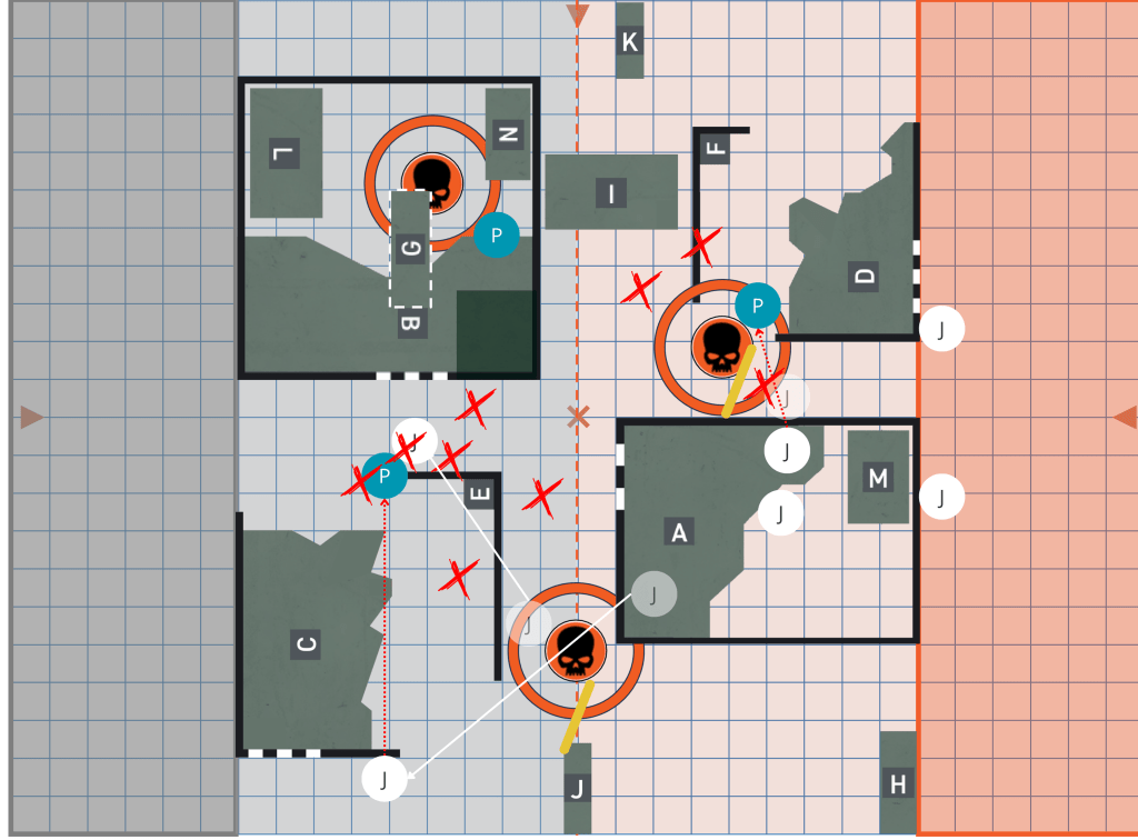 Su Gunner hace charge + fight y elimina a un operativo de Jan sin embargo, la baja tuvo un alto coste, los dados no salieron a favor de Pepe y tuvo que gastar varios CP para concretar la jugada. No se queda ahí: activa Firefight Ploy – Acute Senses, obtiene Seek Light y dispara a otro operativo oculto tras light barricade.