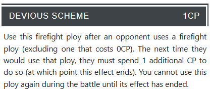 La próxima vez, Acute Senses costará 2 CP. El mensaje es claro. Consciente de que con el reducido pozo de puntos de comando de Pepe, ahora obtendría una ventaja.